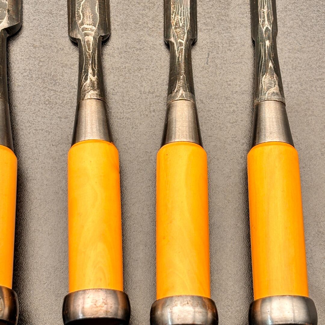 藤廣作 鑿5本セット – 青紙鋼・つげ柄・新潟製・ヴィンテージ未使用品